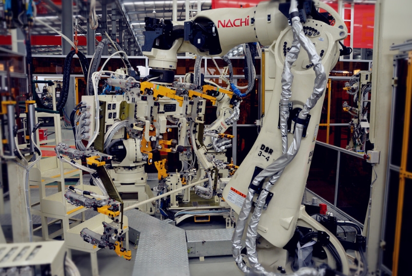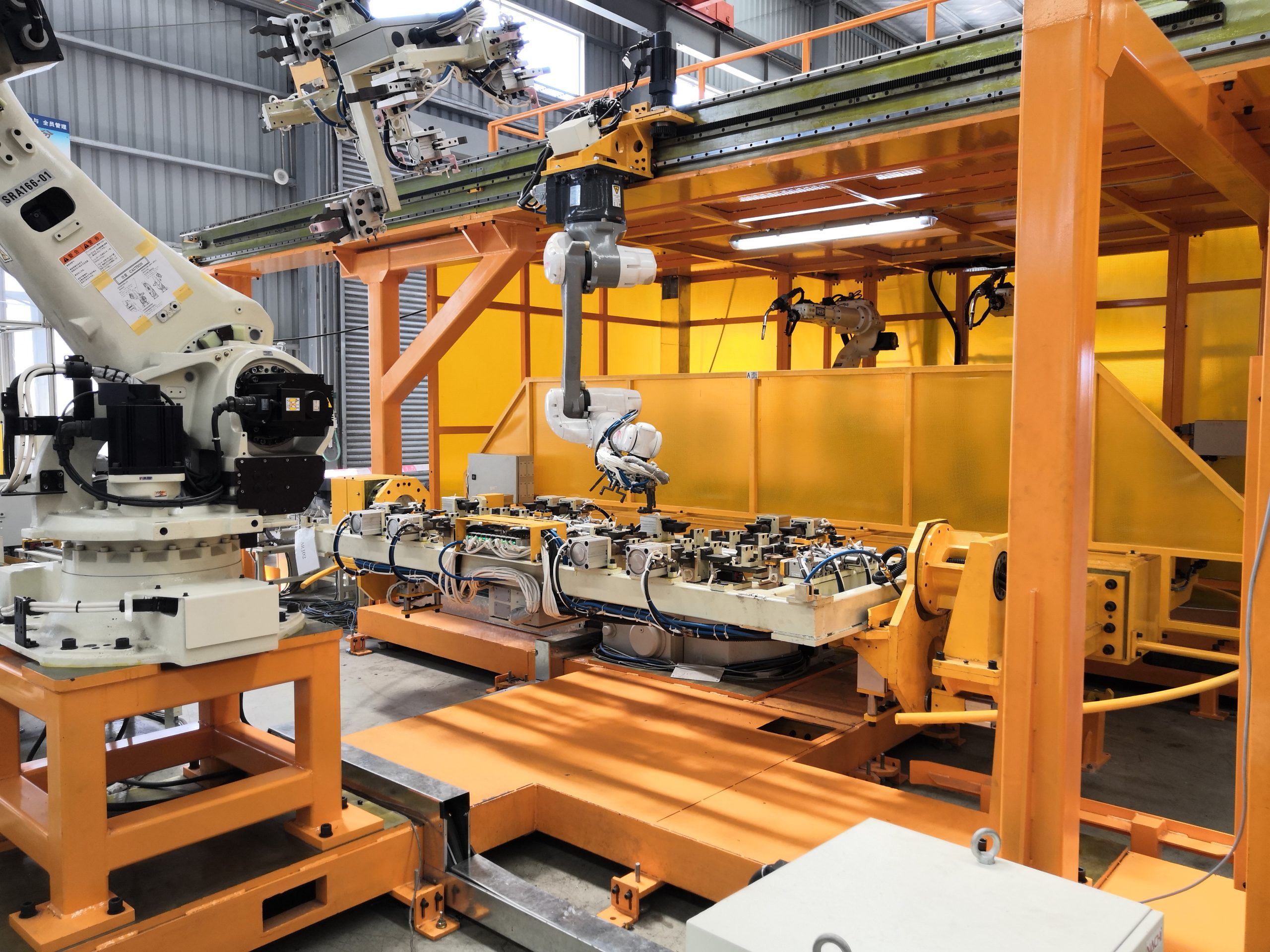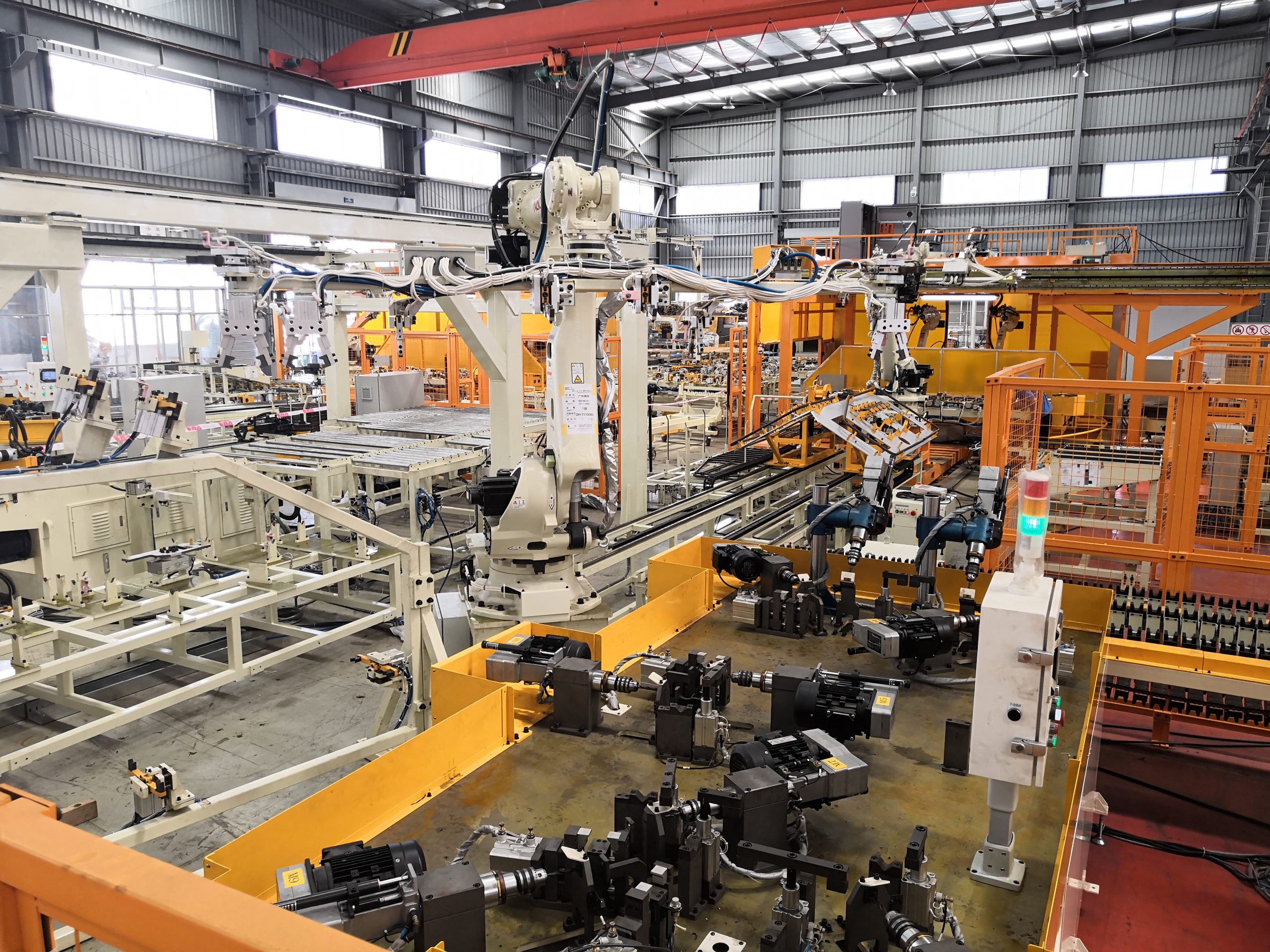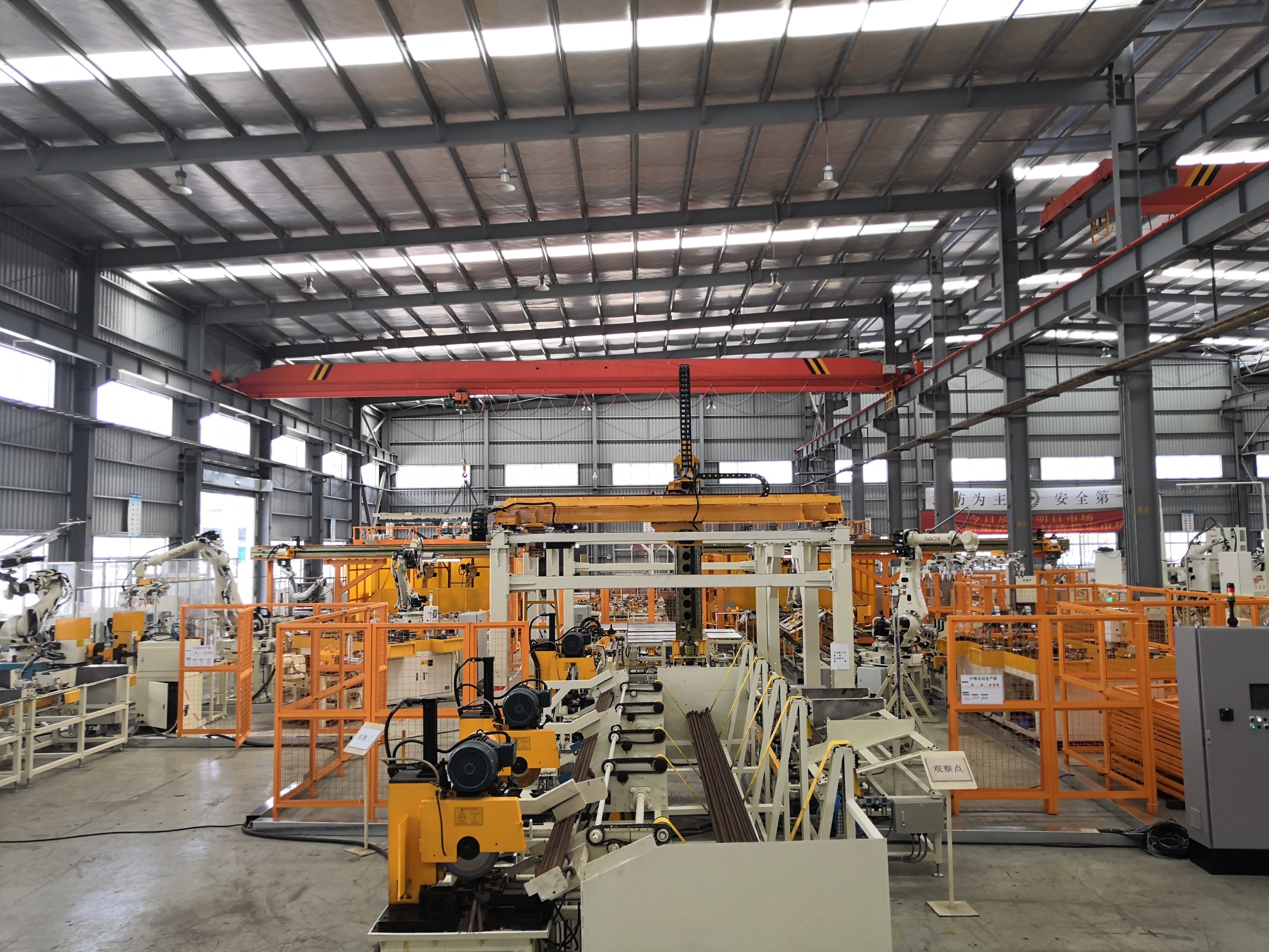 KUKA機(jī)器人6臺(tái)和高速NACHI機(jī)器人21臺(tái),整線內(nèi)含自動(dòng)切斷、彎管、沖孔、修磨、搬運(yùn)、焊接、裝配、視覺(jué)工藝,
